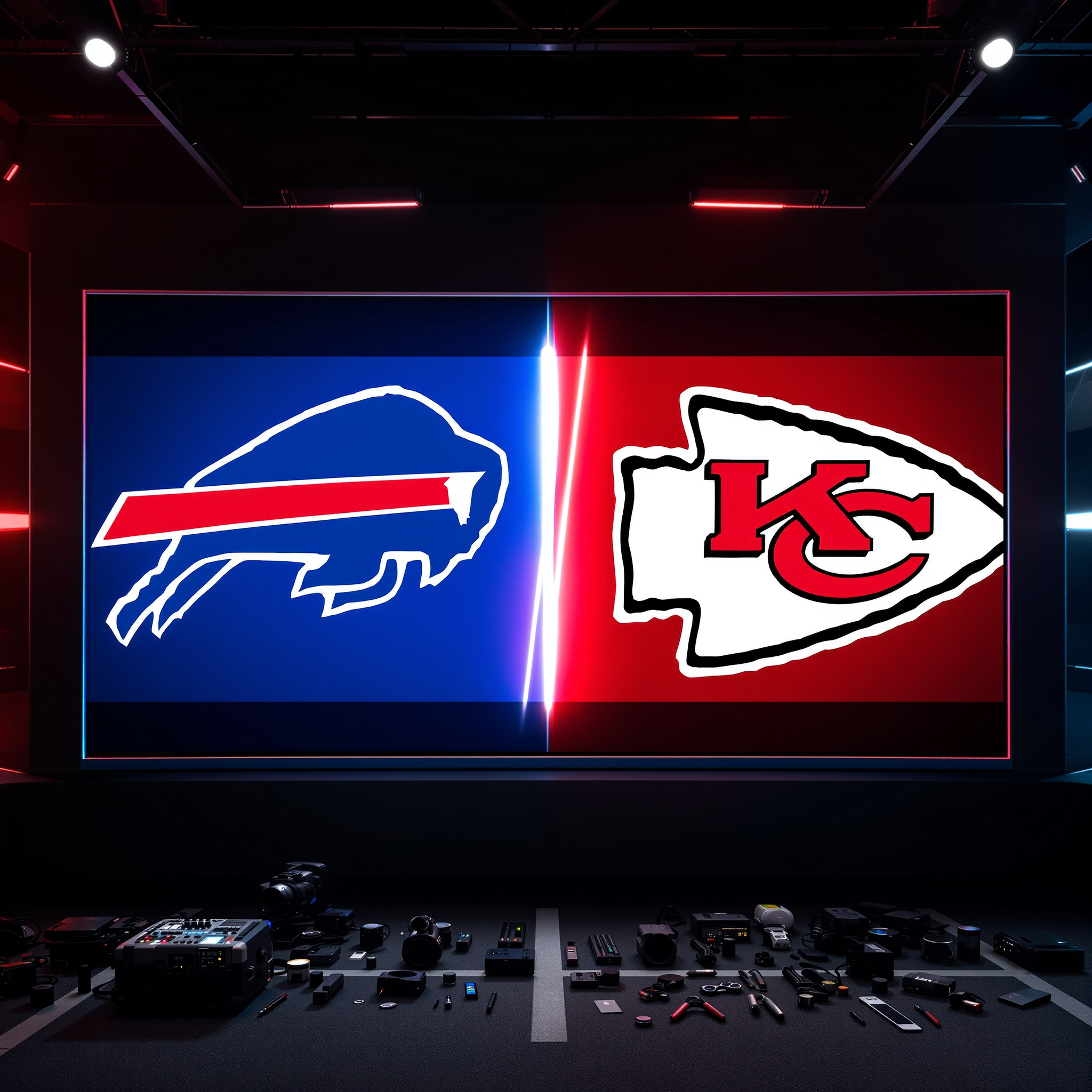 - 대비되는 팀 컬러 활용: Bills의 파란색과 Chiefs의 붉은색을 대비시켜 시각적 임팩트 극대화